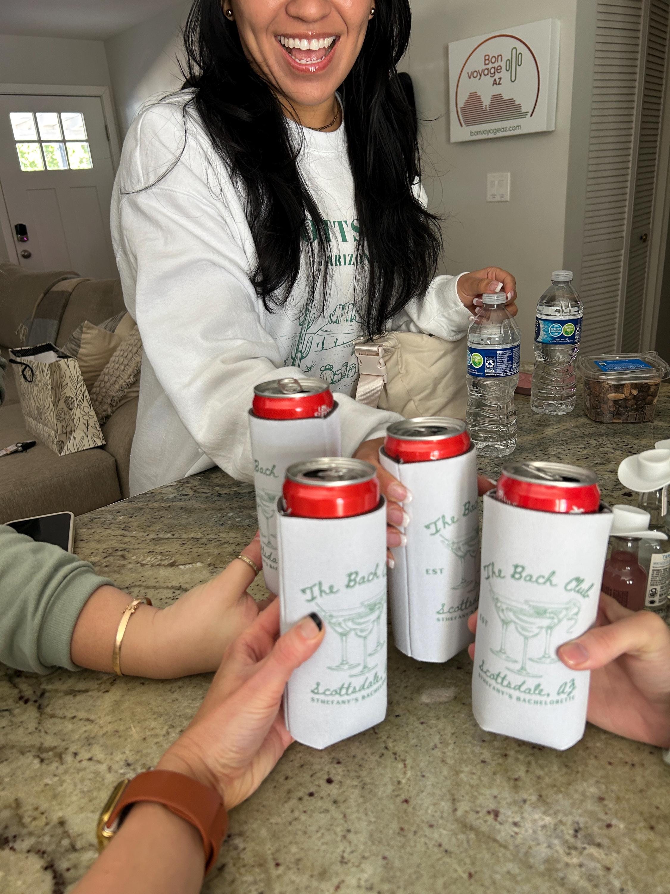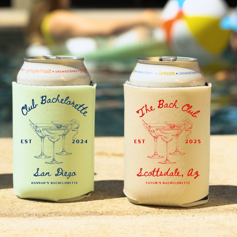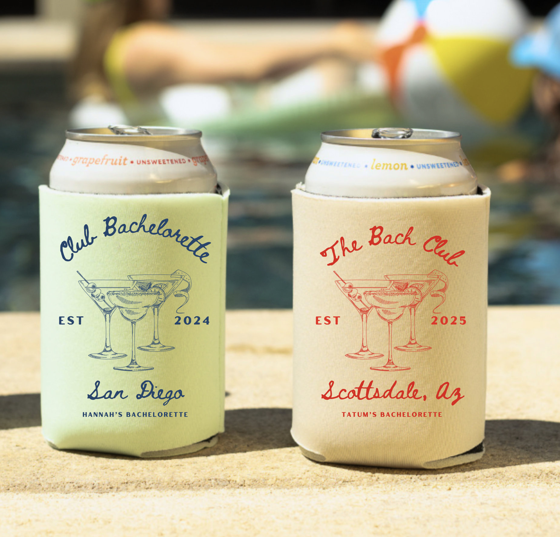 Club bachelorette is in & this has to be our favorite product EVER. Keep those drinks cool with custom bach club can coolers for the gals & guys of the bach, wedding, birthday & more! Perfect for any event you could ever think of ;)