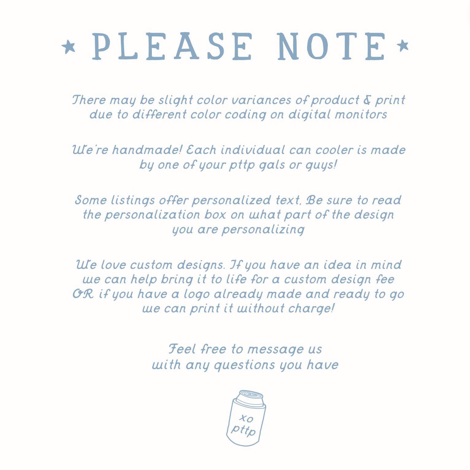 + We’re handmade! Each individual can cooler is made my one of your pttp gals or guys!