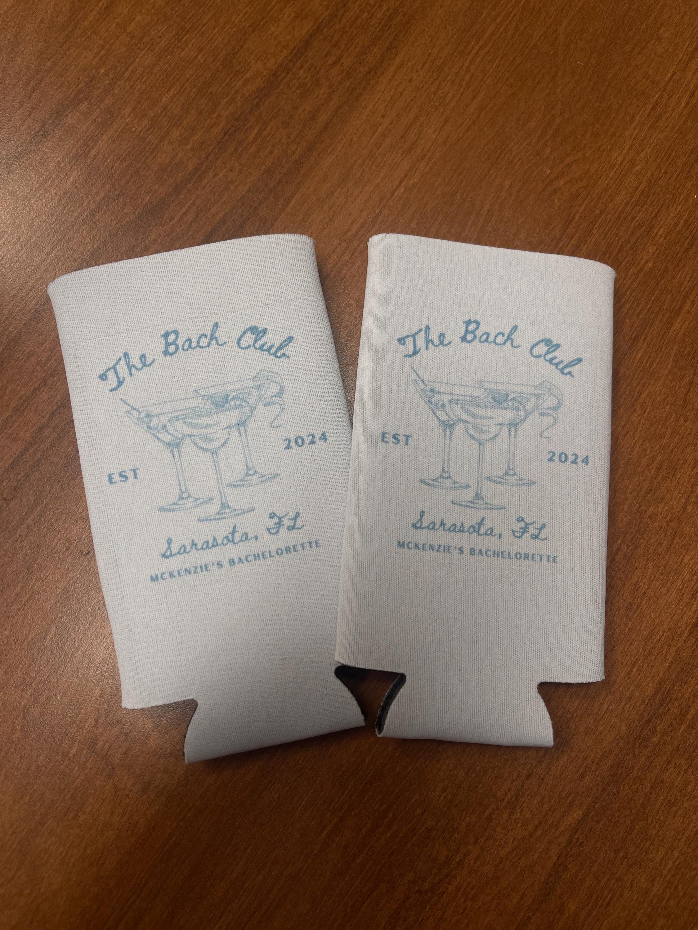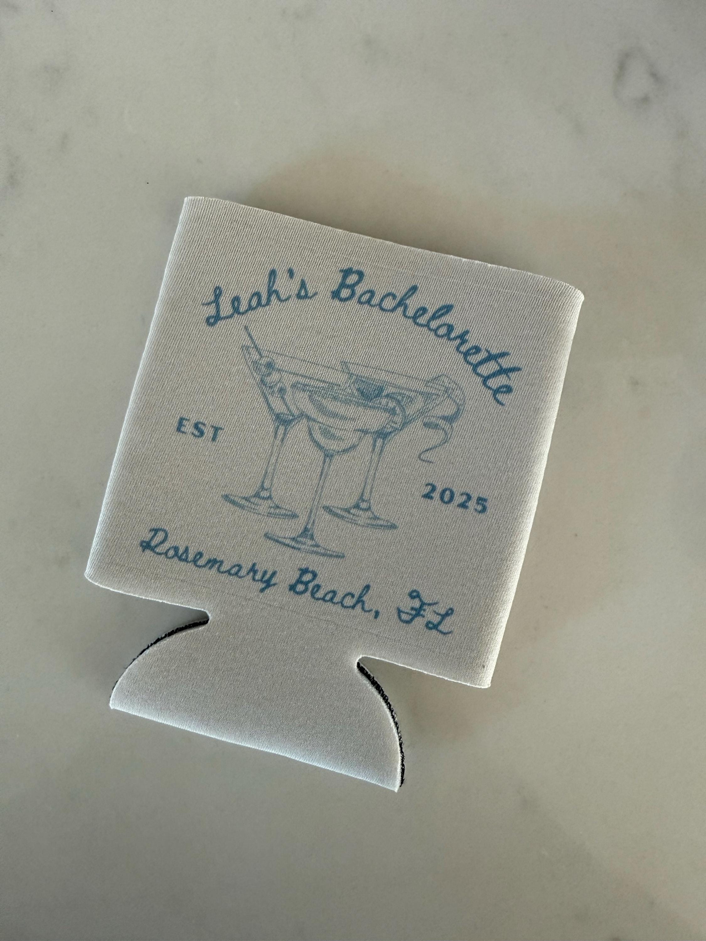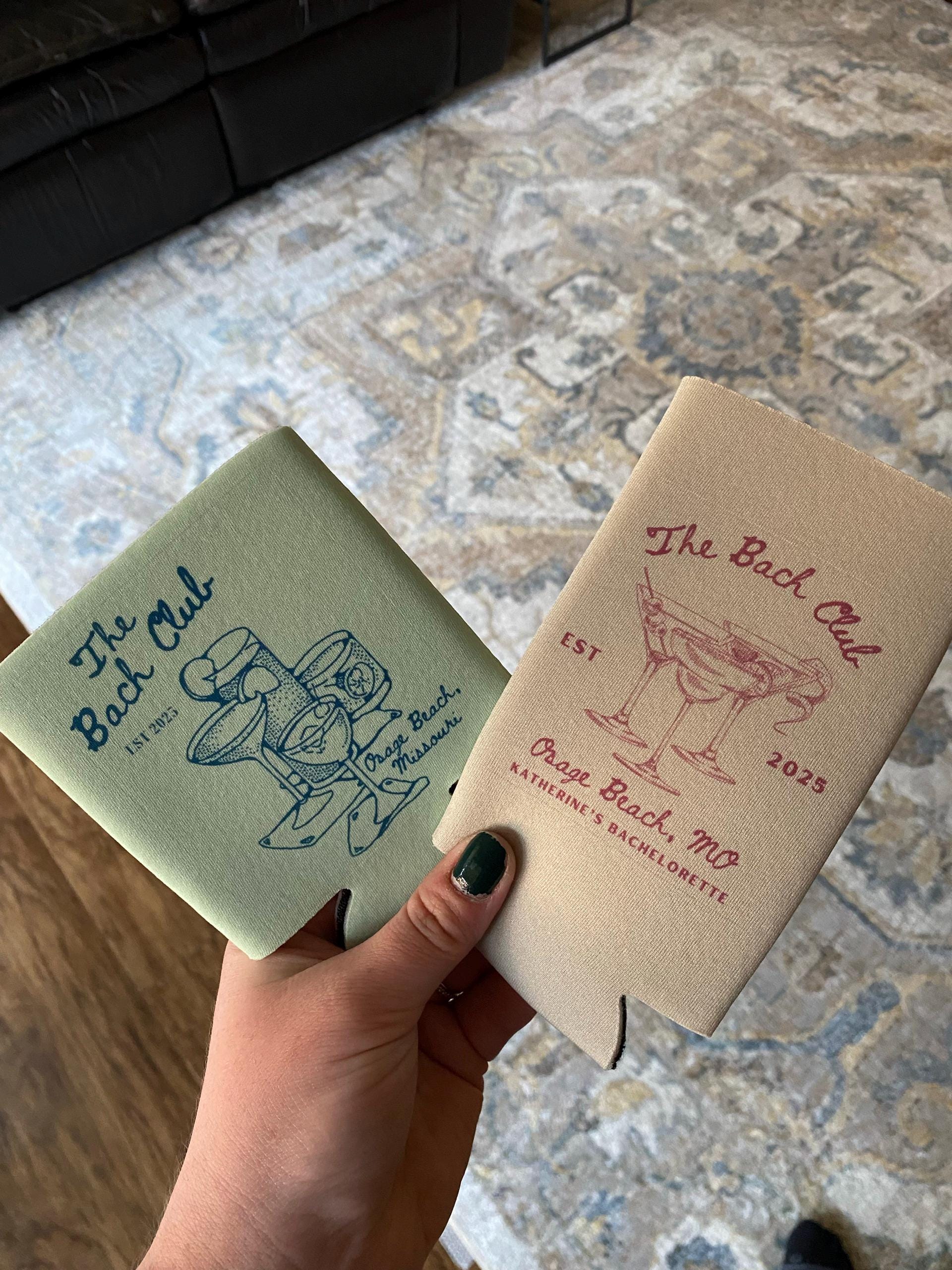 Club Bachelorette - Custom Bachelorette Can Coolers - Hand drawn Coolers - Bachelorette Drink Holders - Club Bach Can Cooler - Bach Favors