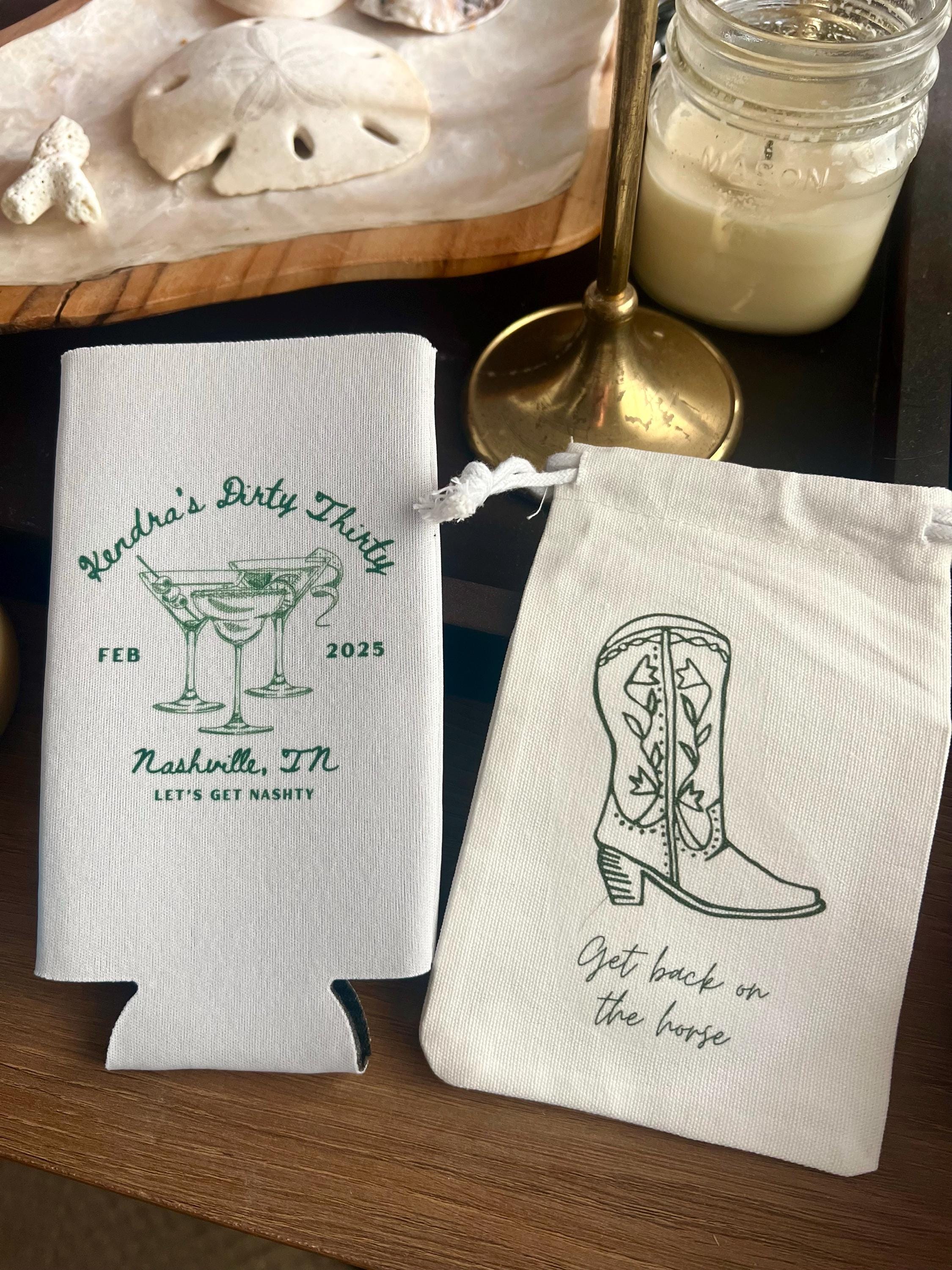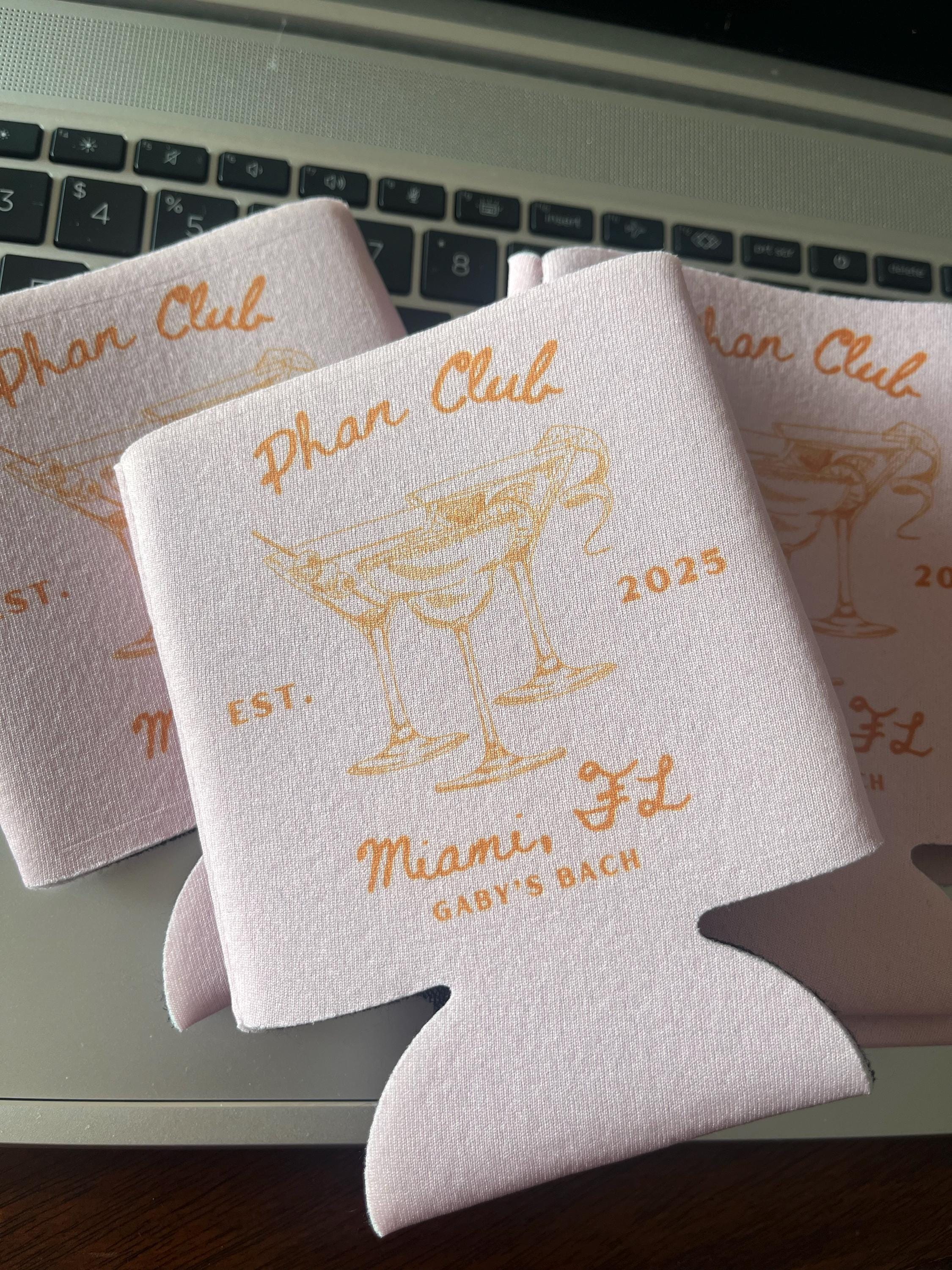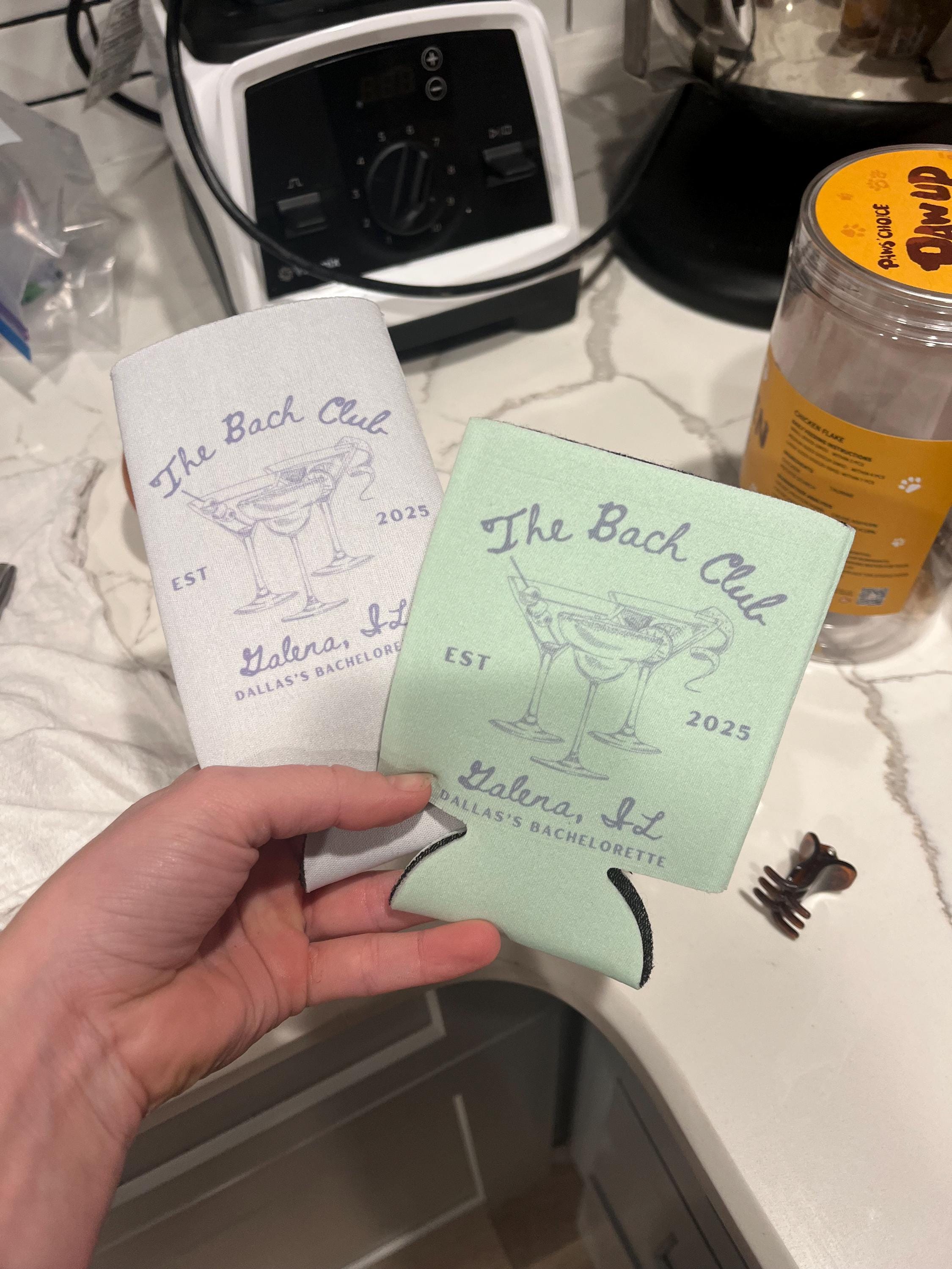 Club Bachelorette - Custom Bachelorette Can Coolers - Hand drawn Coolers - Bachelorette Drink Holders - Club Bach Can Cooler - Bach Favors