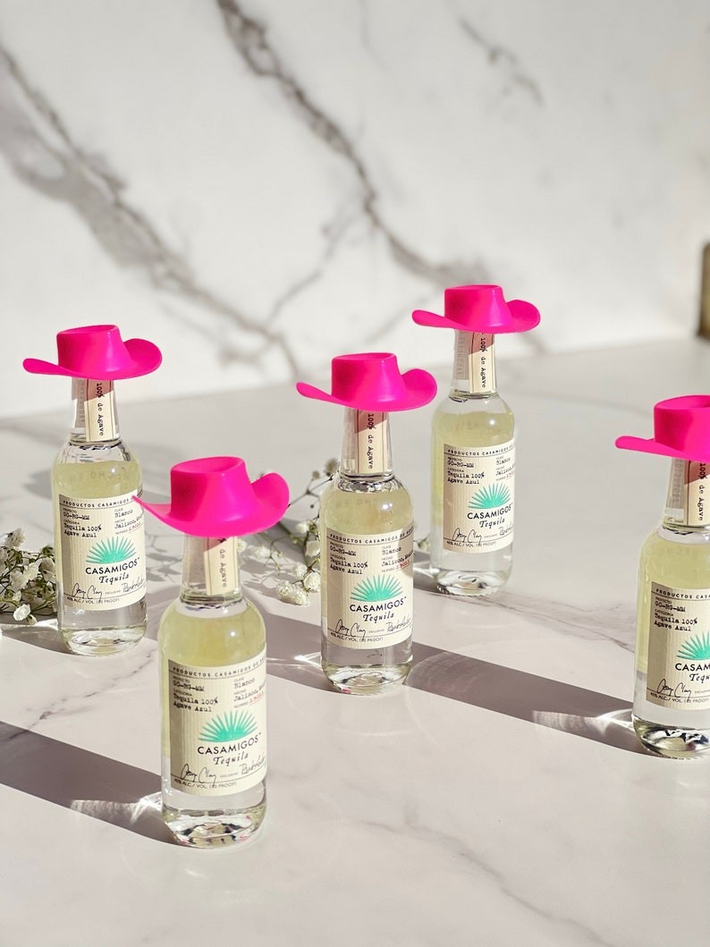 Howdy, y'all! Introducing our Mini Brown/Black/Pink/White Disco Cowgirl Hats - the touch of disco glam every cowgirl needs. for her last rodeo. Crafted with care at a size of 1.97" in width, these plastic mini wonders are designed to fit snugly on your favorite mini shot bottles. A perfect blend of Western charm and modern flair, the vibrant hot pink shade promises to stand out, making you and your posse the talk of the tavern.