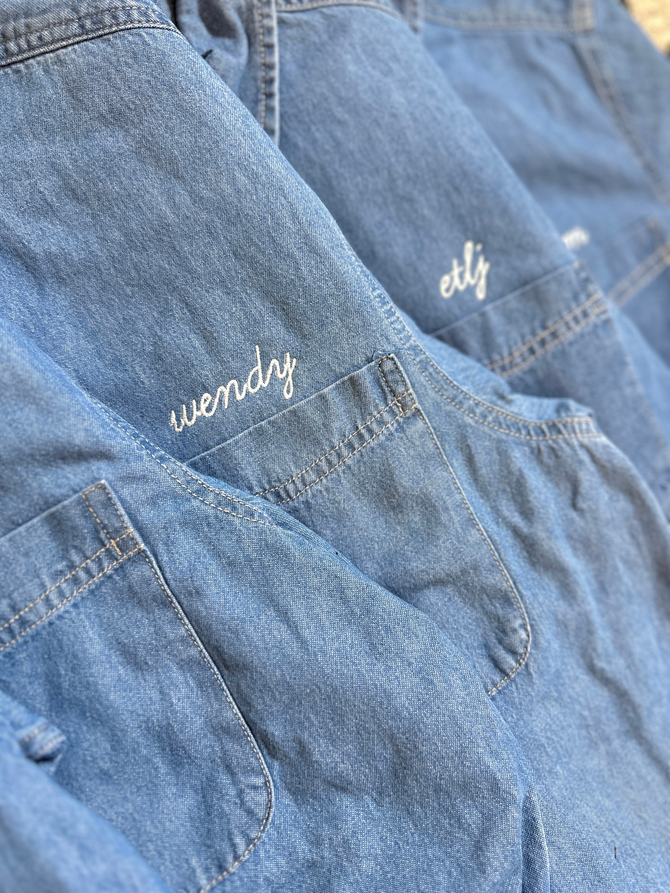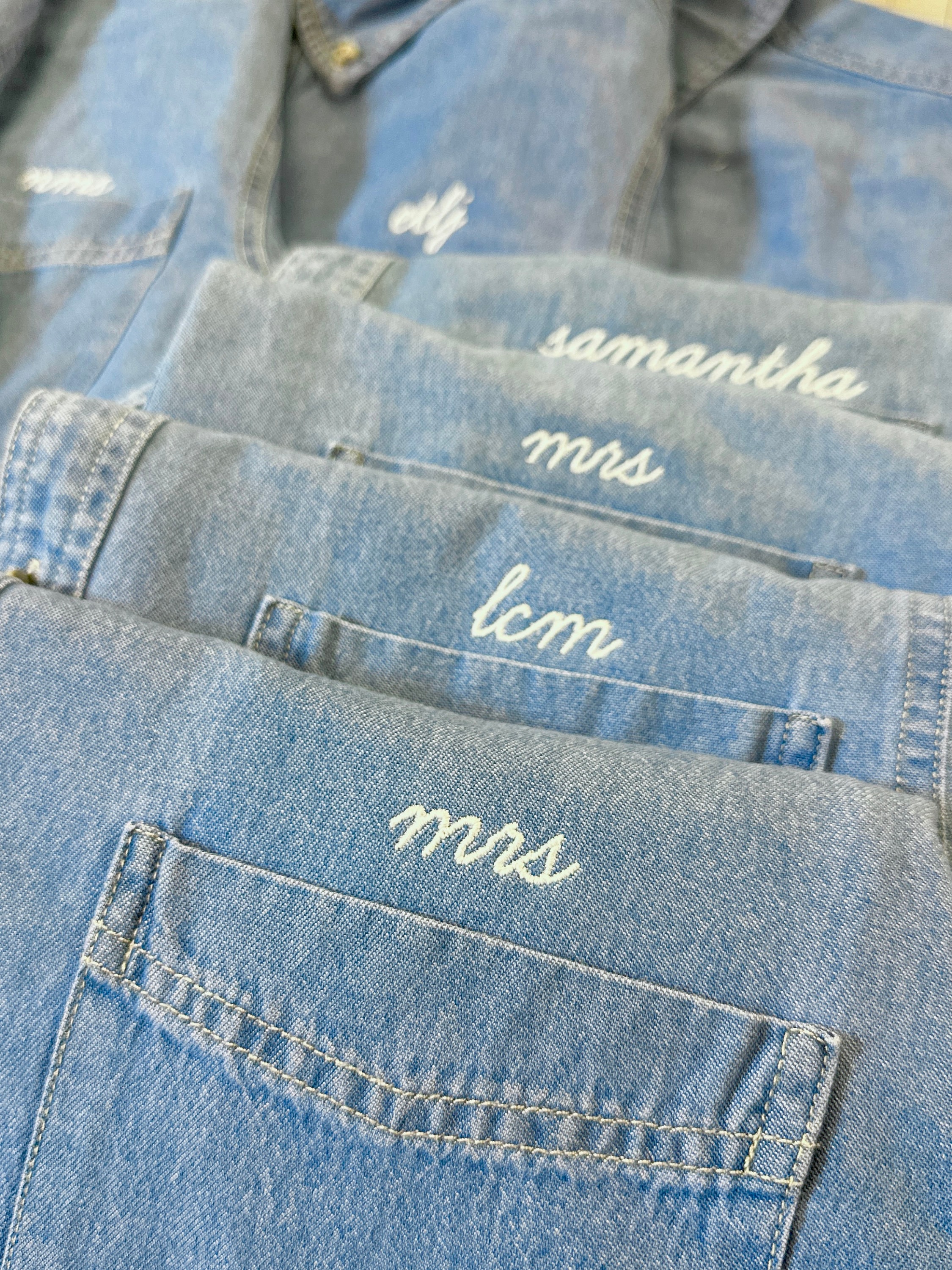 The perfect button down shirt for your coastal wedding vibe! These Unisex/Mens Fit Button Down Oxford and Chambray Denim shirts are perfect to keep you looking fantastic while you ship champagne and have hair and makeup done. These are customized just above the pocket for a trendy and minimalist designer look. The pocket is functional!