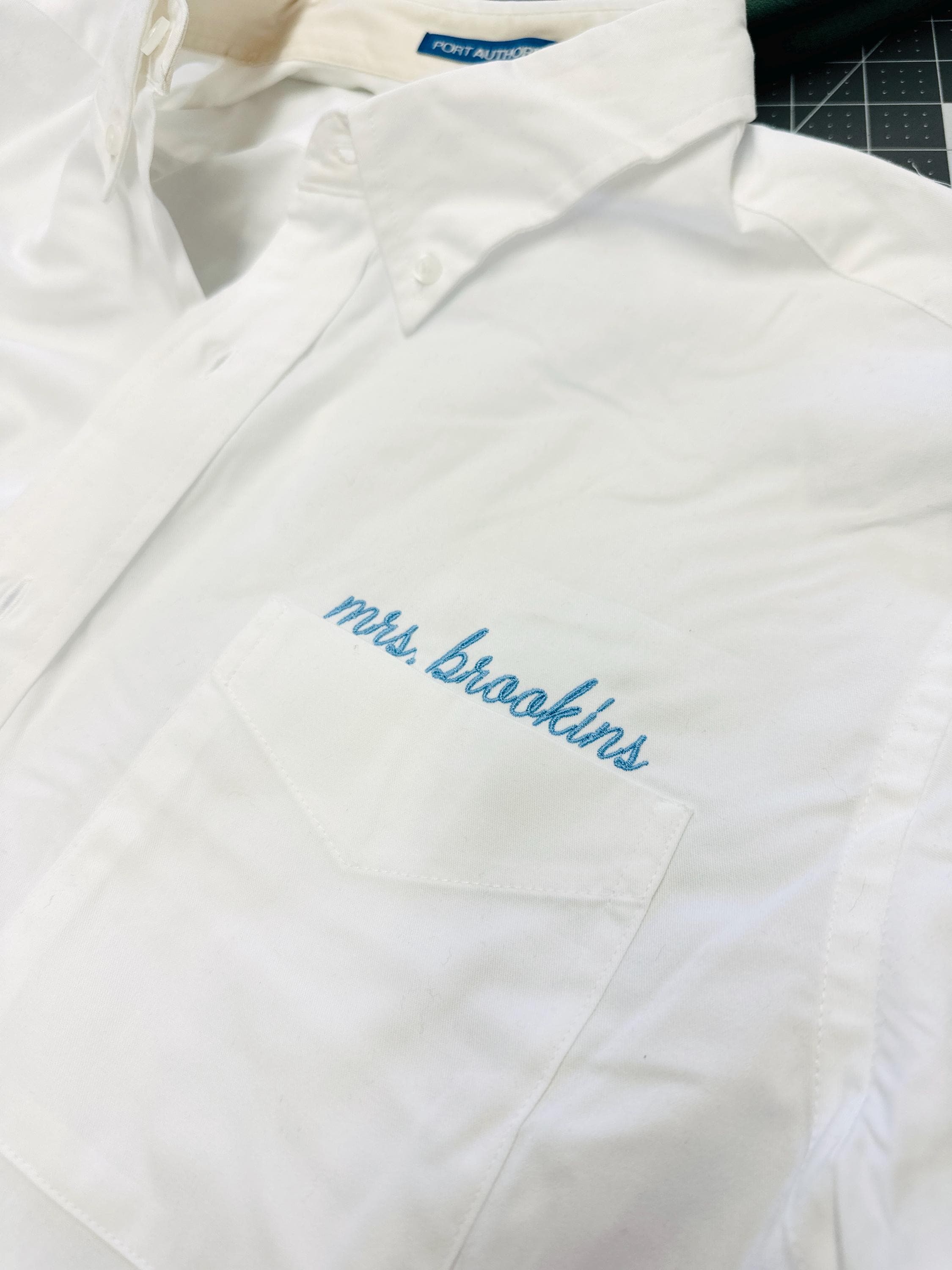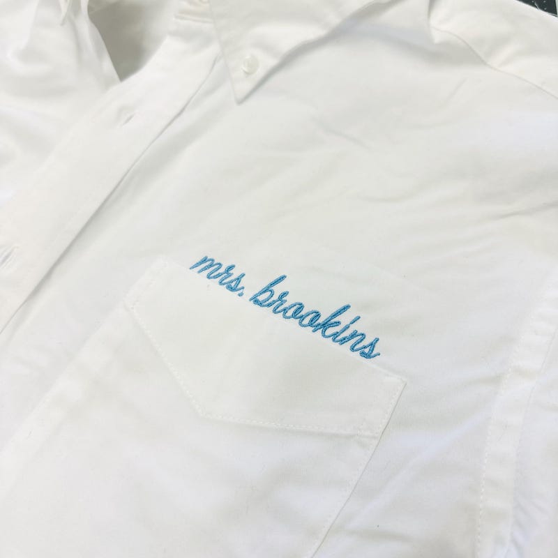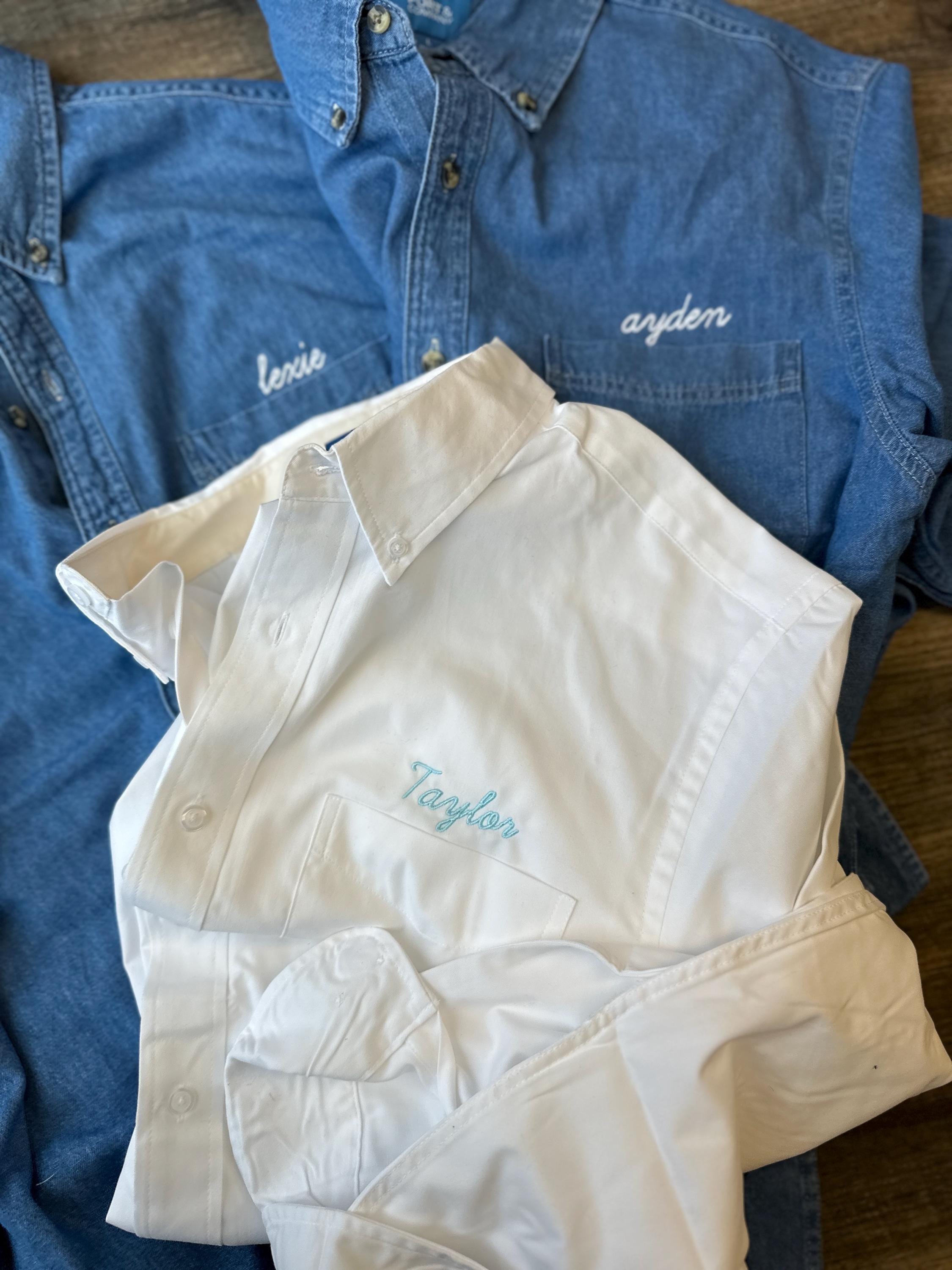 Each button down can be personalized with embroidery on the upper left chest pocket with your choice of phrase or monogram.